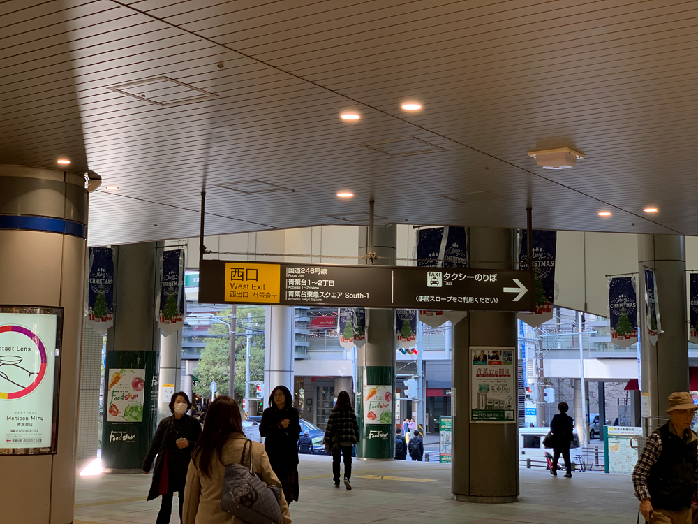 西口から横断歩道を渡り、東急スクエアのSouth-1の本館と別館の間を直進します。