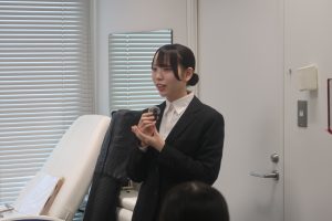 内定者による自己紹介では、地元の美味しいものやオススメの美容グッズ・健康法などを紹介していただき、