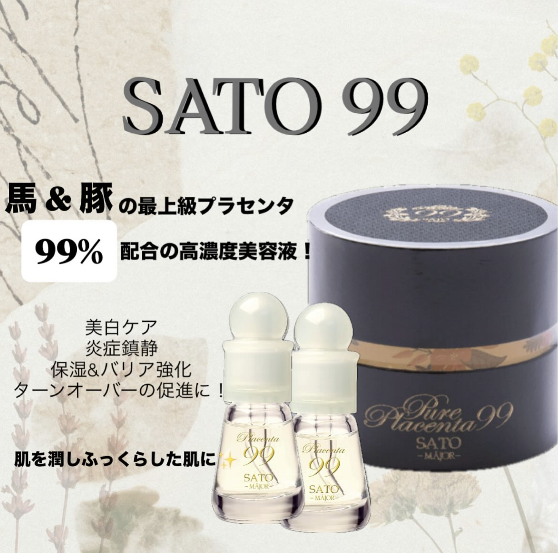 「SATO 99」は馬&豚のプラセンタ原液が99%配合されている高濃度美容液です✨